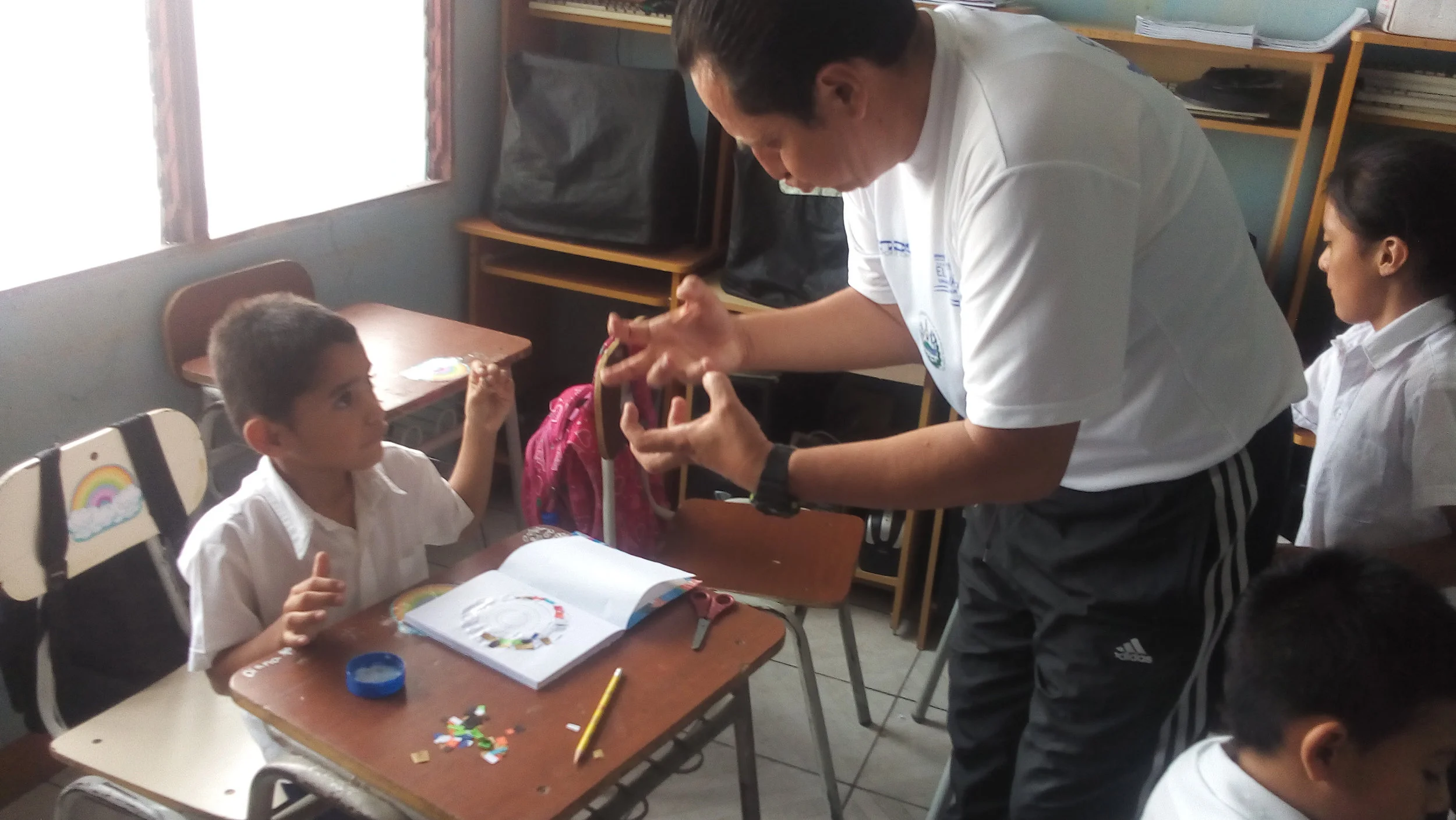 Answers began to emerge when Diego’s parents attended an “encuentro” (meeting) as part of a special project operated by International Partners (IP), a local NGO operating in El Salvador. The project’s goal was to identify individuals with disabilities in rural villages, to investigate barriers to their educational and social participation, and to develop strategies for addressing them. The “encuentro” brought together individuals with disabilities, family members, and professionals working in disability organizations in El Salvador to identify common needs of individuals with disabilities. Diego’s family was invited because they participate in a community-based biblioteca (library) in their village that was operated by IP. The biblioteca provided homework support, access to books and computers, as well as enrichment activities ranging from language and math to art and music. Rachel served on the volunteer support committee. Diego and Damian were regulars at the biblioteca; Diego demonstrated an aptitude for computers. However, no one at the biblioteca knew sign language either. To communicate, they relied on a few simple gestures that Diego had developed himself. Without a better way to communicate at school, Diego would never be able to learn and develop as much as his brother.